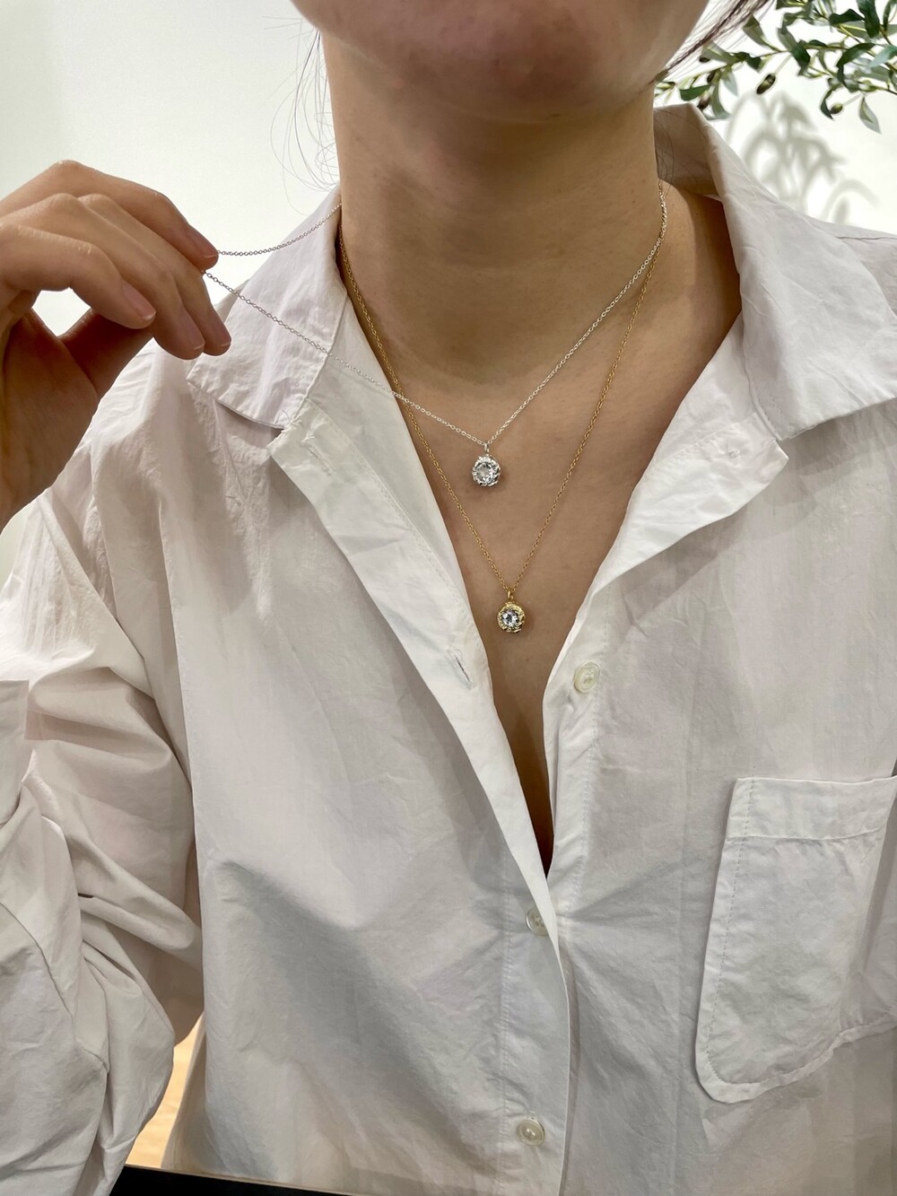 목걸이체인의 길이는 42cm 와 46cm로 연출할수 있습니다.